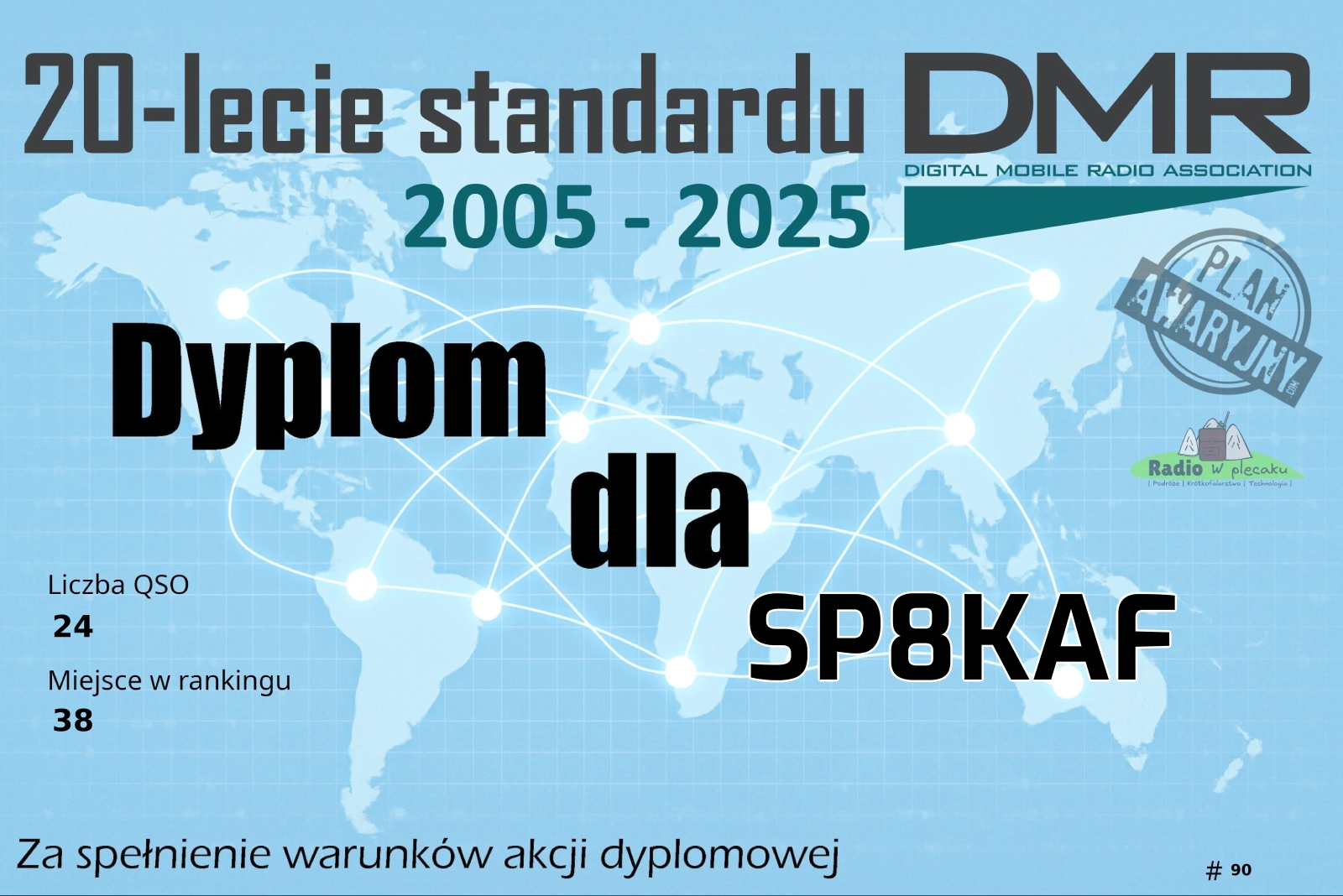 Dyplom "20 lat standardu DMR" dla SP8KAF