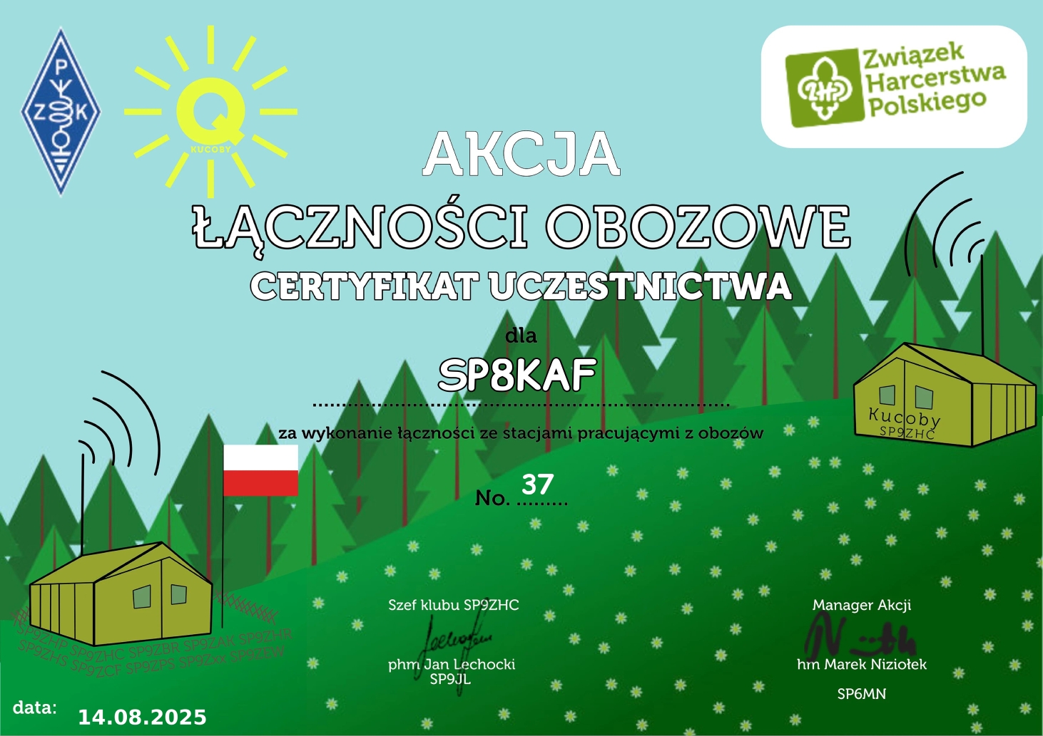 Dyplom "Łączności Obozowe 2025" dla SP8KAF