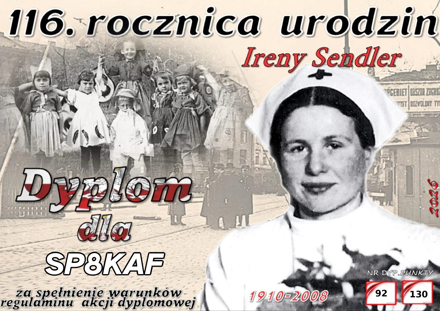 Dyplom Akcji 116. urodziny Ireny Sendlerowej dla SP8KAF