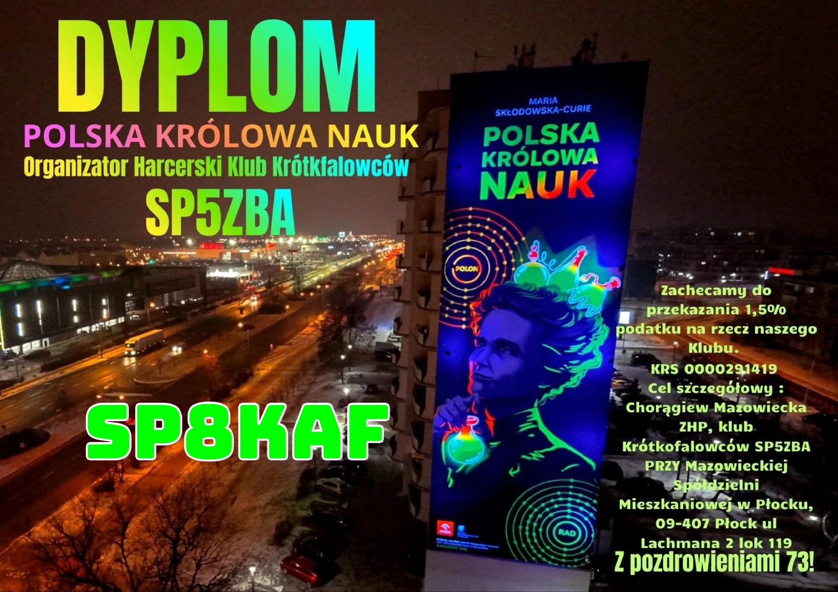 Dyplom Polska Królowa Nauk dla SP8KAF
