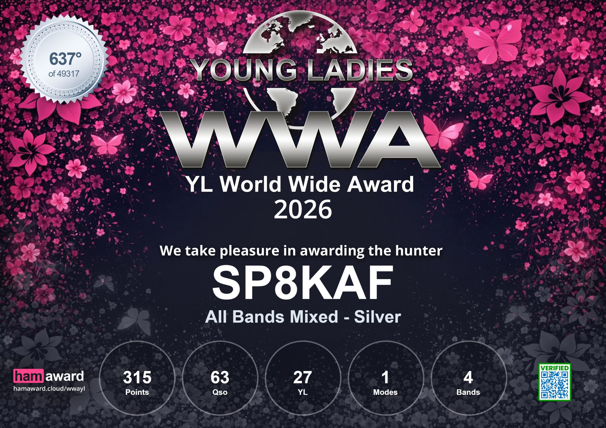 Dyplom YL WWA 2026 SREBRNY dla SP8KAF